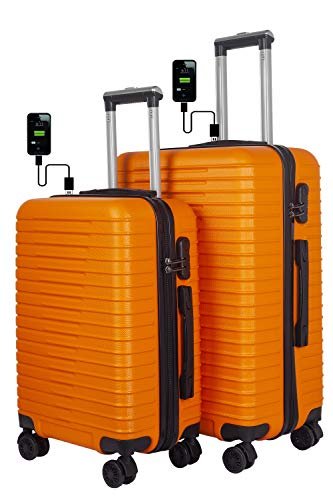 3G Atlantis Smart Series USB Charging 4 Wheel Hard Sided Luggage Set of 2 Trolley Travel Bags (20inch, 55cm & 24inch, 65cm) Suitcase SMT 4